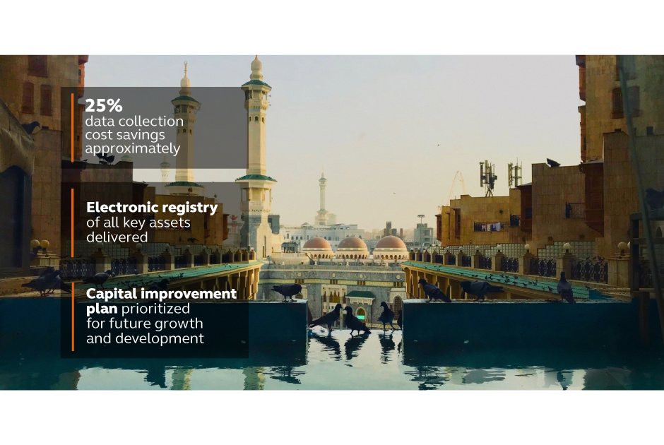 Arcadis helped Oman’s Public Authority for Electricity and Water (PAEW) to improve its overall processes for water management services and deploy new systems and procedures. This was achieved by conducting a needs assessment, developing organizational objectives and asset inventory, and preparing an asset management plan.